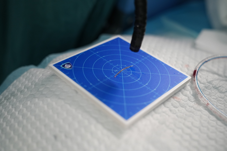 在全麻下,周平红教授熟练运用内镜领域先进的“隧道技术”,先精准切开胃壁,再将内镜穿过小网膜囊,进入腹腔——这一步相当于为内镜“开辟”了一条直达病灶的微创通道。进入腹腔后,团队发现李先生的网膜与左肝脏紧密黏连。周主任立即与在场的肝外科、放射科、麻醉科医生共同讨论,结合术前影像学评估和术中实际情况,一致判断黏连包裹团块处即为异物所在。经过耐心分离后,一抹银光在灯下闪现——那正是长约3.5厘米的鱼刺,锋利如针,已深深嵌入左肝组织中。